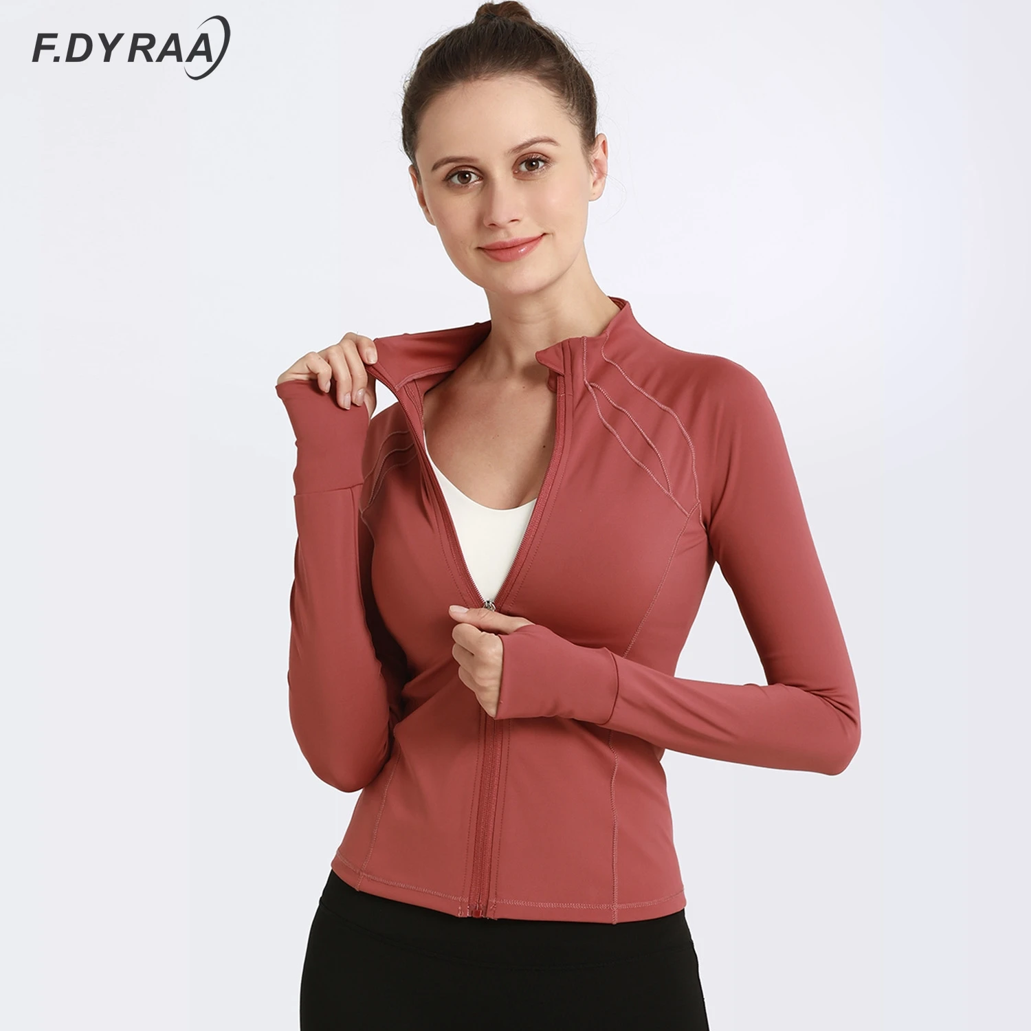 Name: Chaqueta deportiva con cremallera para mujer, abrigo de Yoga de secado rápido con agujero para el pulgar, ropa deportiva para correr, gimnasio, Tops de entrenamiento, chaquetas elásticas para trotar